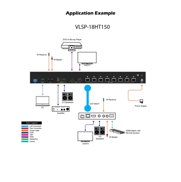 VigilLink VLSP-18HT150 1x8 HDMI 2.0 18Gbps 4K2K Distribution Amplifier over HDBaseT - 492 Foot/150m