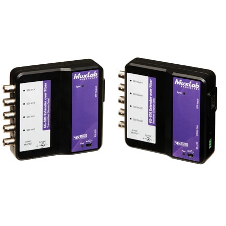 MuxLab 500713 12G-SDI Singlemode Simplex 4K/60 Fiber Extender Kit Transmitter & Receiver - SFPs Included