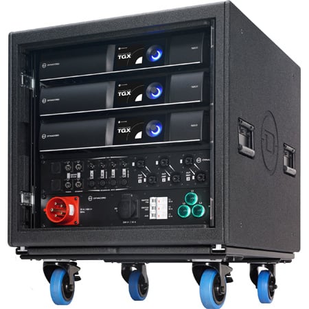 Dynacord SR20TGX-US TGX System Rack is a modular solution designed and built for touring professionals, by touring professionals. The 10 rack unit TGX system rack is pre-configured with three TGX20 DSP amplifiers plus two independent network switches for glitch-free operation and offers a variety of professional features such as integrated sliding rack doors, customizable I/O options, and a reversible mounting for the power distribution. The TGX system racks can be vertically stacked and locked together to give up to 180kW of output power in the same compact footprint as a conventional amplifier rack.