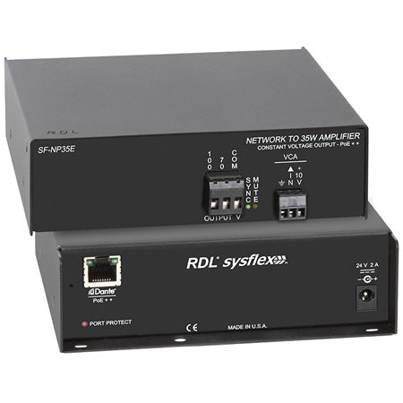 RDL SF-NP35E PoE++ Network to 35 W Mono Audio Amplifier - 70 V or 100 V - Dante