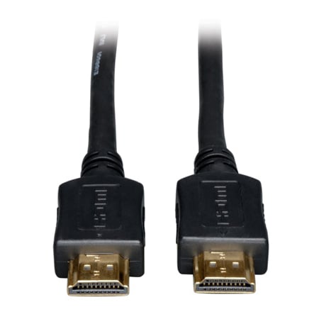 Tripp Lite's 100-ft. Standard Speed HDMI (High-Definition Multimedia Interface) Gold Cable allows interconnection between digital display devices, such as DTV's (Digital Television ), Plasma displays, LCD TV's, and projectors, to Digital source devices, such as Digital Set-Top boxes, Blu-Ray players and AV receivers. Supports iPad2 Video Mirroring when used with Apple Digital AV Adapter. HDMI assures that the best audio/video signal is always sent from source (HDTV signal, Blu-Ray Player) to the display (Projection Television, LCD, Plasma, etc.). It does this by allowing uncompressed video and multi-channel audio data to be input to the display device through a single cable. An HDMI connection allows input at high rates of speed, up to 10.2 Gbps. In most applications, a signal booster (B122-000-60) will need to be used with this cable to ensure a signal strong enough for your display.