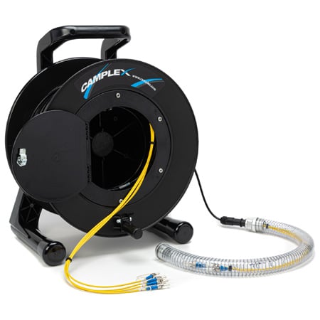 Camplex 4-Channel ST Single Mode Fiber Tactical Cable Reel with Protective Pulling Sleeve - 500 Foot