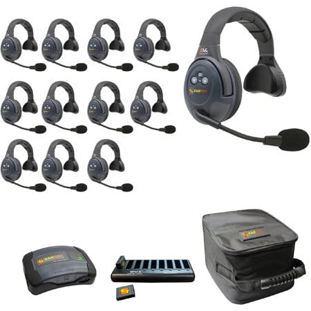 Eartec EVADE EVX12D-CM Full Duplex Dual Channel Light Industrial Wireless Intercom System w/ 12 Dual-Ear Headsets