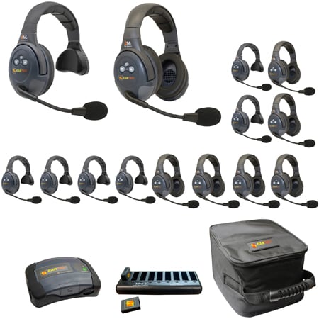 Eartec EVADE EVX13D-CM Full Duplex Dual Channel Light Industrial Wireless Intercom System w/ 13 Dual-Ear Headsets