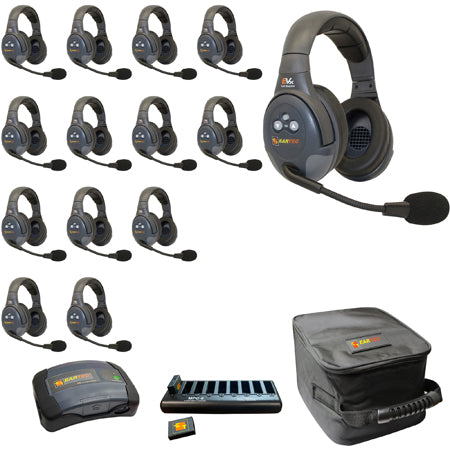 Eartec EVADE EVX14D-CM Full Duplex Dual Channel Light Industrial Wireless Intercom System w/ 14 Dual-Ear Headsets