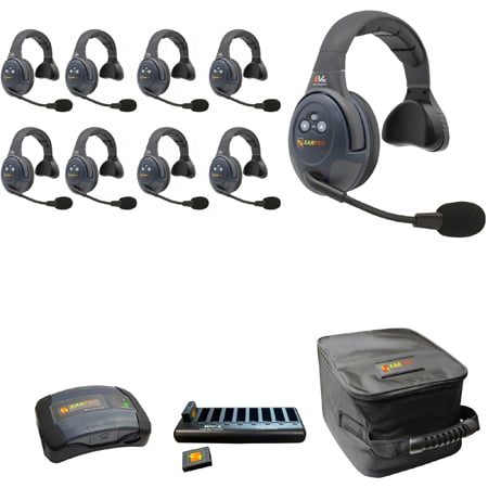 Eartec EVADE EVX9S-CM Full Duplex Dual Channel Light Industrial Wireless Intercom System w/ 9 Single-Ear Headsets