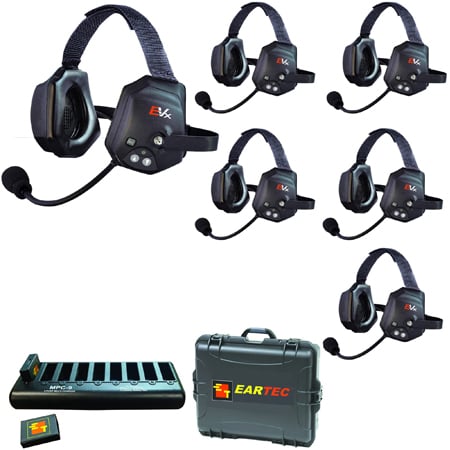 Eartec EVADE EVXT6 Xtreme Full Duplex Industrial Wireless Intercom System with 6 Dual-Ear Headsets