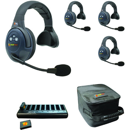 Eartec EVADE EVX4S-CM Full Duplex Dual Channel Light Industrial Wireless Intercom System with 4 Single-Ear Headsets