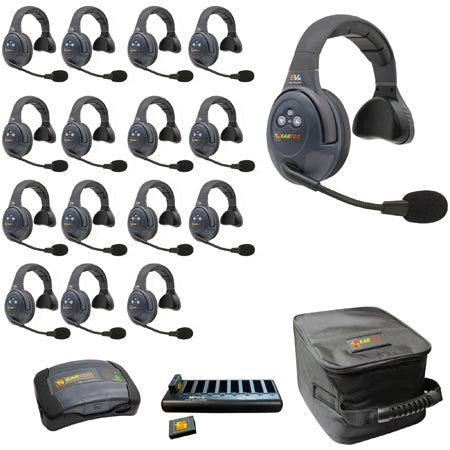 Eartec EVADE EVX16S-CM Full Duplex Dual Channel Light Industrial Wireless Intercom System w/ 16 Single-Ear Headsets