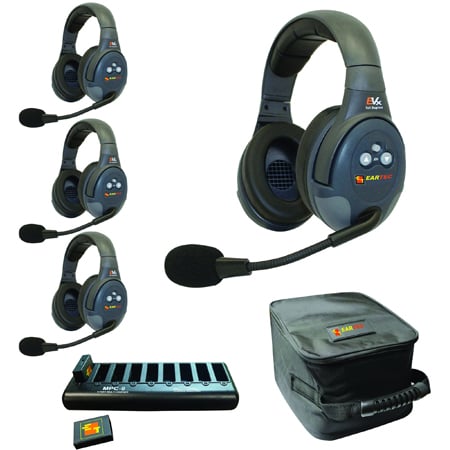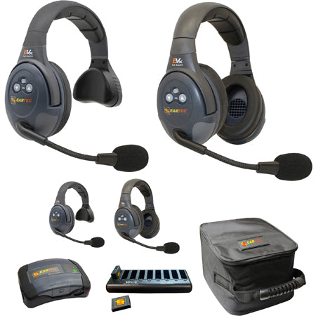 Eartec EVADE EVX4D Full Duplex Light Industrial Wireless Intercom System with 4 Dual-Ear Headsets