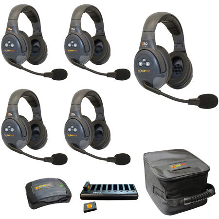 Eartec EVADE EVX5D Full Duplex Light Industrial Wireless Intercom System with 5 Dual-Ear Headsets