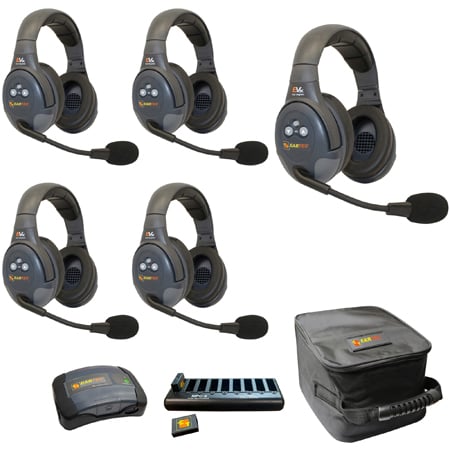 Eartec EVADE EVX5S-CM Full Duplex Dual Channel Light Industrial Wireless Intercom System w/ 5 Single-Ear Headsets