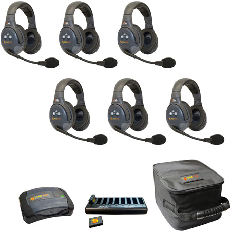 Eartec EVADE EVX6D Full Duplex Light Industrial Wireless Intercom System with 6 Dual-Ear Headsets
