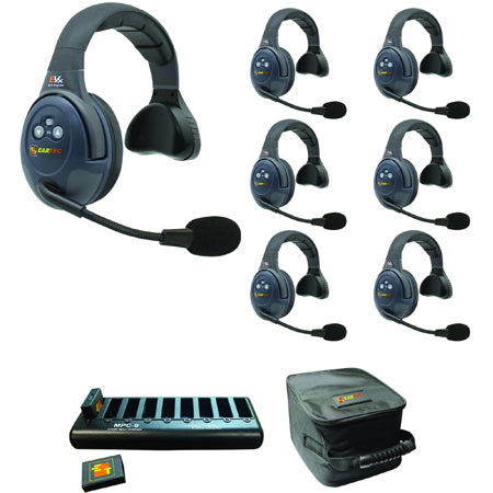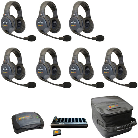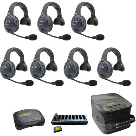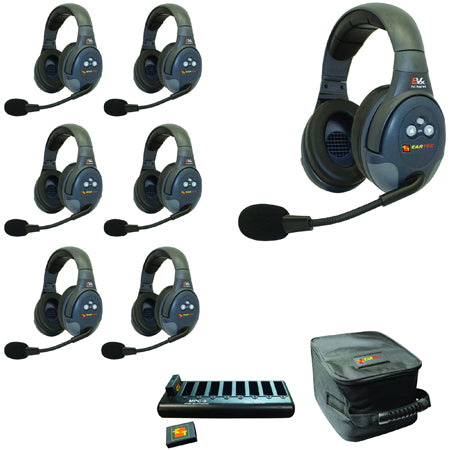 Eartec EVADE EVX7D Full Duplex Light Industrial Wireless Intercom System with 7 Dual-Ear Headsets