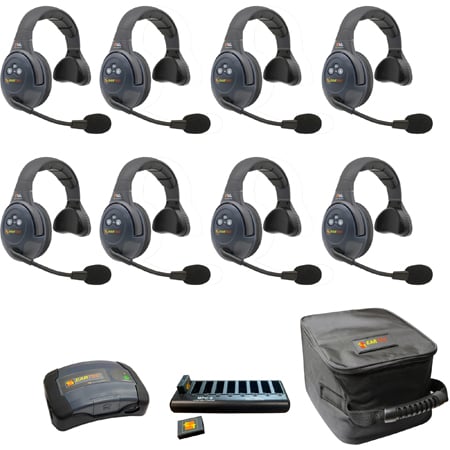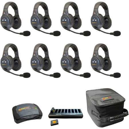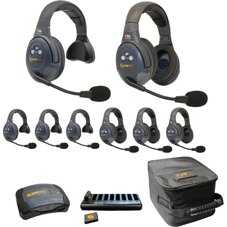 Eartec EVADE EVX8D Full Duplex Light Industrial Wireless Intercom System with 8 Dual-Ear Headsets