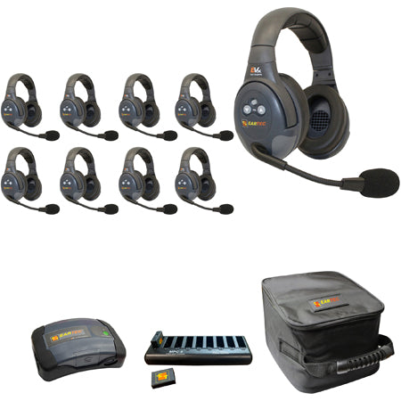 Eartec EVADE EVX9S Full Duplex Light Industrial Wireless Intercom System with 9 Single-Ear Headsets