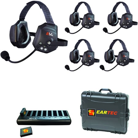 Eartec EVADE EVXT5 Xtreme Full Duplex Industrial Wireless Intercom System with 5 Dual-Ear Headsets