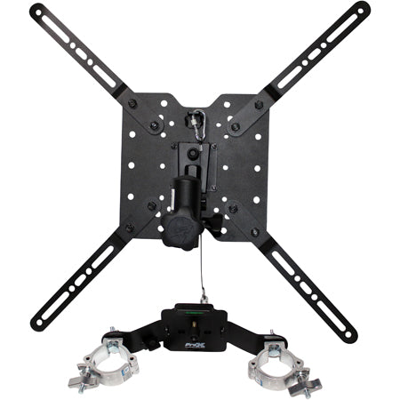 ProX XT-MEDIAMOUNT Universal TV/Monitor mount is a quick and easy mounting bracket that attaches (Non-Plasma) Flatscreen TVs from 32" to 90". XT-MEDIAMOUNT mount allows for easy, quick and stable mounting for your Flatscreen TV which can be mounted vertical or horizontal with ease. The speaker pole mounting bracket can be adjusted left, right, up, and down to desired viewing angle. It has maximum load capacity that supports up to 100lbs. The truss mounting bracket can be mounted to F34, F32, and 12" trussing. The included speaker stand mount connects to the VESA TV 1-3/8" Speaker Stands.