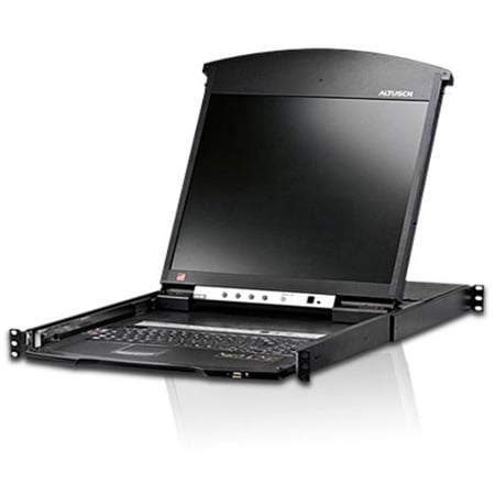 The KL1516Ai Dual Rail LCD KVM Switch is a control unit that allows secure access up to 16 computers from a single KVM (keyboard, video, and mouse) console. It consists of an integrated LCD monitor, keyboard, and touchpad in a 1U rack-mountable retractable sliding housing.