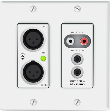The Attero Tech unD6IO DanteTM Audio Interface is a cost effective multi-IO wall box. The unD6IO features two balanced mic/line XLR inputs, and two balanced outputs on side panel de-pluggable connectors. Two RCA line level inputs and a 3.5mm TRS line level input complete the available inputs. A 3.5mm TRS line level output is also included.