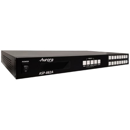 The ASP-882A is an HDMI 2.0A 8x8 4K 60Hz matrix, offering the power and flexibility you need at a cost effective price. Route Ultra High Definition video sources and multi-channel digital audio from any of the HDMI inputs to the any of the HDMI outputs at the same time. The front keypad and LCD display are designed for easy operation and quick status of routing while the integrated Web Control Pages allow for remote control from any device with a Web Browser (Tablets, Computers, Smartphones, etc.). LAN and RS-232 Ports have advanced protocols allowing hot plug detection, signal detection, EDID table loading/recalling, presets, and more. The advanced protocol features and integrated Web Control make the ASP-882A perfect for commercial applications with auto switching, digital signage with device detection, or residential systems with home automation.