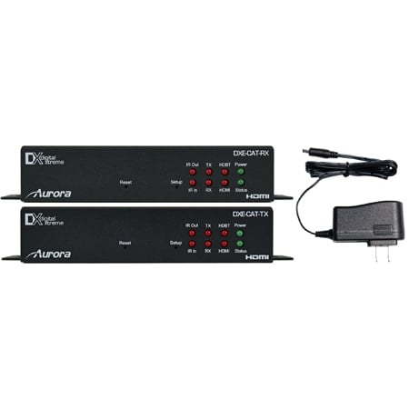 The DXE-CAT-S2 is part of Aurora’s expanding Digital Xtreme Series, and one of many HDBaseT CAT extender kits. The DXE-CAT-S2’s powerful design provides usability and features not found anywhere else. Single-sided connections for LAN, HDMI, Control and Power provide a cleaner wiring and rack mounting solution. The Patents Pending design allows the system to be powered via POE or AC adapter from either side! With a single CAT 5e/6/7 cable, the DXE-CAT-S2 can go up to 330ft 1080p 60Hz 48bit color depth with bi-directional RS-232, IR, & LAN (up to 600ft with CAT 6a shielded cable at 24bit color depth). The kit includes the DXE-CAT-RX2, DXE-CAT-TX2, and the PS0080-1 power supply.