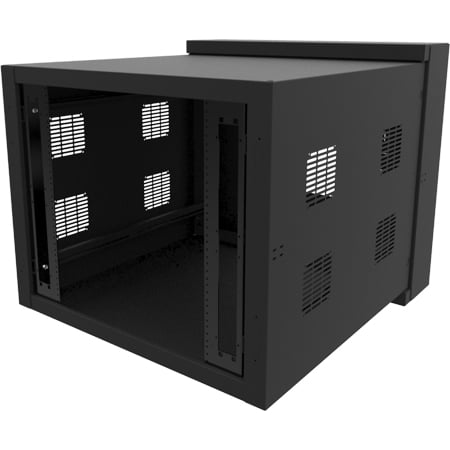 Hammond HWC3012U35BK 12RU 30 inch wide, 34.78in deep, swing-out wall rack cabinet. The main body is constructed in 16-gauge welded steel and includes four (4) vents for optional fans on the sides of the cabinet. The main body can be installed to swing from left-to-right or right-to-left.