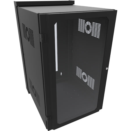 Hammond HWM2420U26WDBK 20RU 24 Inch Width 31.7D Swing Out Wall Cabinet with Window Door. All sizes include either vented 63% perforated front door or smoked window front door.