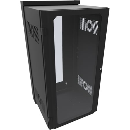 Hammond HWM2424U20WDBK 24RU 24 Inch Width 25.7D Swing Out Wall Cabinet with Window Door. All sizes include either vented 63% perforated front door or smoked window front door.