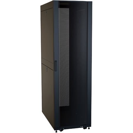 The Hammond RB-DC4242 is a 42RU Server Cabinet. Includes locking side panels, leveling feet, casters, square hole rails, vented front door, vented split rear door, vented top panel. Suggested load capacity of 2,300 lbs.