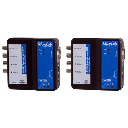 The 6G-SDI Extender over UTP is a unique solution from MuxLab for extending SDI cameras or other SDI sources up to 4K resolution at up to 330ft (100m) using standard Cat5e/6 UTP cable.