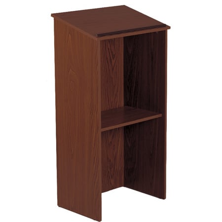 The Oklahoma Sound 222 Series Full Floor Lectern is a dignified and durable unit made with 3/4" stain and scratch-resistant thermofused melamine laminate over a particleboard core. Its cabinetry features a large reading surface with a convenient book stop as well as spacious shelf for storage. It includes protective floor glides and an optional caster kit (#2CS) is available separately to enable mobility and is ready for easy assembly.
