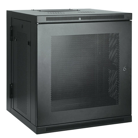 The SRW10US 10U Wall-Mount Rack Enclosure Cabinet is designed to integrate wall-mounting, easy equipment access, and cable management in IT network applications with limited floor space. Ventilated front door and side panels allow generous airflow to keep equipment operating safely. Adjustable rack rails with square mounting holes accommodate up to 10U of standard 19" rackmount equipment. Supports up to 200 lbs of equipment. A sturdy hinge between the cabinet and the wall-mount bracket allows the cabinet to swing away from the wall for easy access to equipment and cabling. Top and bottom panels include convenient cutouts for cable routing.