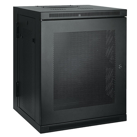 Tripp Lite’s SRW15US Wall Mount Rack Enclosure Cabinet is the ideal storage solution for standard rackmount equipment in applications with limited floor space. Constructed with a hinged wall mounting bracket and a sturdy steel frame, it can accommodate up to 225 lbs. of equipment in 15U of rack space. Four adjustable vertical mounting rails with square holes accommodate all standard 19-inch rack equipment. To allow easy access to rackmounted equipment, the enclosure cabinet is hinged to swing away from the wall mounting bracket. The SRW15US also features perforated lockable side panels and front door, assuring generous airflow to keep equipment operating safely. The front door is reversible and the side panels are removable for easy access to equipment. The top and bottom panels of the enclosure include convenient cable routing ports.