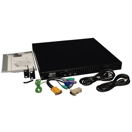 Tripp Lite's 32-port NetDirector Cat5 IP KVM Switch is the optimal solution for remotely controlling multiple computers (combination of PS/2, USB and Serial) by up to 3 (1 Local and 2 Remote) independent, simultaneous users. A full-screen graphical OSD with multi-level authentication (Super Administrator, Administrator and User) allows you to quickly and efficiently manage your installation, and can be displayed in English, German, Russian, Japanese, traditional Chinese and simplified Chinese. Critical events on the installation can be tracked via email notification, SNMP traps, the Windows-based log server or Syslog server. Accessing the connected computers is a breeze; view multiple computers at the same time using panel array mode, automatically sync USB mice, access the on-screen keyboard feature in numerous language formats. Virtual Media allows computers connected using a B055-001-USB-V2 Server Interface Unit to access DVD/CD drives, flash drives and other storage media as if they were directly connected to the computer. In addition, three USB ports are located on the front panel of the unit for use with Virtual Media or an external keyboard and mouse. Other features include dual power supplies that allow the unit to continue running in the event one power supply stops receiving power, temperature sensors that control the speed of the unit's cooling fans, remote authentication support via RADIUS, LDAP, LDAPS and Active Directory, dial-in modem access and non-browser access using Windows and Java applications. Constructed of heavy-duty steel housing.
