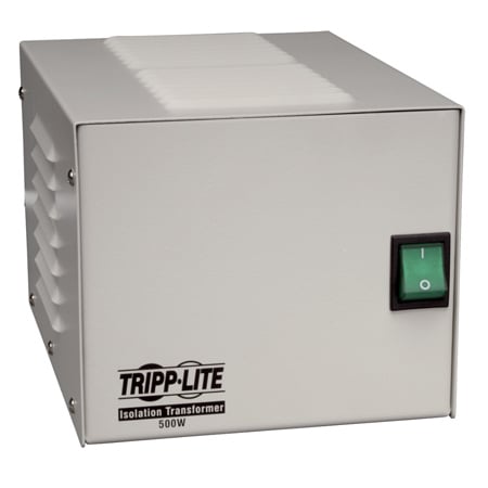 Isolator Series UL60601-1 Listed Medical Grade Isolation Transformers offer line isolation, continuous noise filtering and enhanced common mode surge suppression. An internal low-impedance isolation transformer component offers 100% isolation from the input AC line. Full UL60601-1 medical-grade listing with hospital-grade plug and outlet receptacles makes Isolator medical-grade transformers ideal for protection of sensitive electronic equipment in patient-care areas. Faraday shield reduces the cumulative leakage current of the Isolator and connected equipment to levels less than 100 microamps. Secondary neutral-to-ground bonding virtually eliminates common mode noise, providing an isolated neutral-ground reference for sensitive equipment, and an inexpensive alternative to dedicated circuits and site electrical upgrades. Removes EMI/RFI noise, utility switching transients and harmonics generated by other on-site loads and utility or lightning related surge conditions. Active transformer filtering provides continuous common-mode noise rejection with no wearable parts. Unique ability to reduce surges in the worst of power environments to harmless levels. Reduces 6000V IEEE587 Cat A&B ring wave and combination wave test surges to only 0.5V common mode. Model IS500HG includes 4 widely spaced NEMA 5-15R hospital-grade output receptacles, a 10-ft. power cord, hospital-grade input plug, circuit breaker overload protection, and lighted power switch. Rugged all-metal unit ships ready for placement in any industrial, medical, office or network environment. PLUG/OUTLETS: Input - NEMA 5-15P Hospital Grade; Output - 4 NEMA 5-15R Hospital Grade ELECTRICAL: 120V AC, 60Hz, 2.1A (Requires NEMA 5-15R wall receptacle)