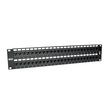 Tripp Lite's Enhanced Category 5 Patch Panels offer you all the functionality and compatibility as any name brand. Each panel comes with 110-type termination, while meeting and exceeding EIA/TIA TSB-40 Cat5e connecting hardware specifications. Color coded for both EIA/TIA 568A & 568B installations. 48 ports ensure a wide range of plug-n-play options. The clear numbering on both the front and back of each panel gives you a quick and easy way to identify cable runs and the high density 19in panel design will save you valuable space in on the rack. Tripp Lite warrants this product to be free from defects in materials and workmanship for life.