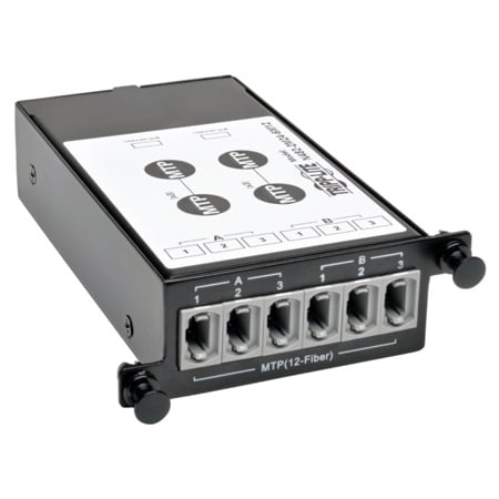 Tripp Lite's N482-2M24-6M12 is a High Density 100/120Gb to 40Gb Breakout Cassette, with (x2) 24-Fiber MTP/MPO connections to (x6) 12-Fiber, OM4, MTP/MPO connections. For use with Tripp Lite's N482-01U and N482-02U High Density Fiber Enclosure Panels; up to 5 cassettes per N482-01U, or up to 14 cassettes per N482-02U. Installation is simple, with the cassette being easily installed or removed using push / pull tabs to lock or unlock it from the panel; no tools required.