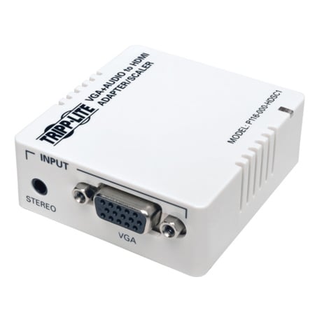 The P116-000-HDSC1 VGA with Audio to HDMI Converter/Scaler saves you money on costly computer upgrades by converting and upscaling a VGA video signal for viewing on an HDMI display. The built-in scaler upgrades the VGA input signal, allowing you to display 720p or 1080p high-definition video in your home audio/video setups, media presentations or digital signage using your tried-and-true analog source equipment. The unit is ready to use right from the box with no software or drivers required.