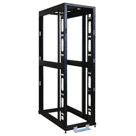 The SR42UBMDEXPND is a 42U SmartRack enclosure with NO doors and NO side panels. The 'EXP' version is an expansion model used when several cabinets are bayed together. Its integrated baying tabs make it easy to combine multiple enclosures in rows for data center applications. This enclosure is also compatible with hot-aisle/cold-aisle configurations.