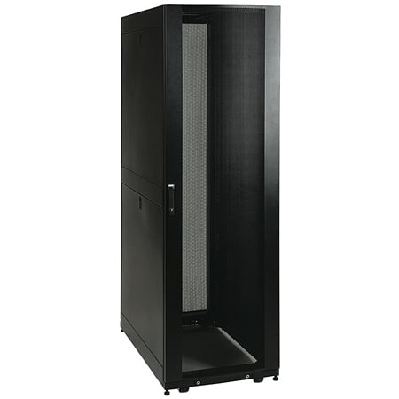 42U SmartRack Enclosure ships mounted on a special pallet that features additional reinforcement and shock-absorbing material. The pallet's protective cushion safeguards the enclosure and the precision components it contains during re-shipping. Reinforced pallets and reusable packaging provide the flexibility to fully configure rack enclosures in a centralized location and safely re-ship them to remote sites, saving significant service costs. They also allow the freedom to custom-configure enclosures with network and server hardware along with UPS systems, PDUs, KVM switches and a variety of other devices prior to final installation.SmartRack enclosures are designed for secure, high density server and networking applications in IT environments. Designed with provisions to integrate cooling, power distribution and cable management, SmartRack enclosures make ideal homes for mission-critical equipment. Vendor-neutral square hole/cage nut mounting for guaranteed compatibility with all EIA-310-D compliant 19" equipment. Enclosures ship fully assembled for rapid deployment and roll into place on heavy-duty casters. Toolless mounting slots allow quick installation of PDUs and vertical cable managers. Adjustable mounting rails include an easy-view depth index to eliminate time-consuming measurements. Lightweight modular doors and side panels provide safe, convenient service access. Integrated baying tabs facilitate combining enclosures in rows for standard data center baying applications. SmartRack enclosures hold up to 3000 lbs and support cooling, cable management, power distribution and monitoring features that keep critical servers and network equipment operating nonstop. Perforated doors permit massive front to rear airflow that exceeds servers manufacturer requirements. Enclosures are fully compatible with hot-aisle / cold-aisle data center configurations.