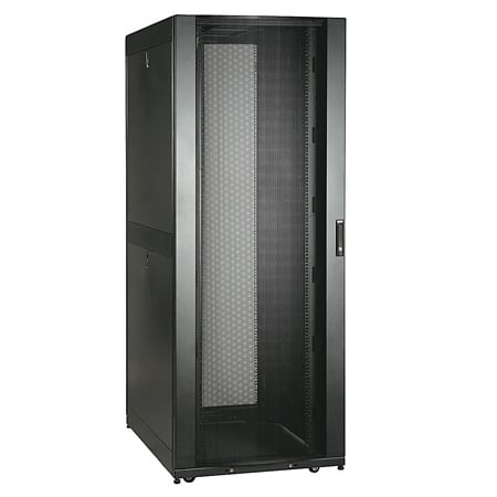 Wide version of our standard 42U SmartRack Enclosure but ships mounted on a special pallet that features additional reinforcement and shock-absorbing material. The pallet's protective cushion safeguards the enclosure and the precision components it contains during re-shipping. Reinforced pallets and reusable packaging provide the flexibility to fully configure rack enclosures in a centralized location and safely re-ship them to remote sites, saving significant service costs. They also allow the freedom to custom-configure enclosures with network and server hardware along with UPS systems, PDUs, KVM switches and a variety of other devices prior to final installation. At the desired location the SR42UBWDSP1 can be easily maneuvered with its preinstalled casters and can be secured by adjusting the preinstalled levelers.The SR42UBWDSP1 is 750mm wide (30") compared to the standard 600mm wide (24") This extra width allows for high density equipment installations. It allows cable management and PDU mounting off to the sides of the rack in order to keep these items out of the airflow for proper cooling. The SR42UBWDSP1 houses 3000lbs of standard 19-inch rack equipment in 42U. Its front and rear pairs of vertical rails have square mounting holes that are adjustable in quarter-inch increments from 4 to 42 inches. Adjustment is quick and an easy-view depth index ensures consistent rail placement without requiring time-consuming measurements. Each rack space within the enclosure is numbered for ready reference.The top panel of the SR42UBWDSP1 is vented to help remove warm air from the enclosure and draw in cool air by convection. the top panel includes ports for cable routing, and can be quickly removed without tools. The facilitate cable access, the SR42UBWDSP1 is open-bottom.All components of the SR42UBWDSP1 are grounded to the enclosure frame. Front and rear threaded grounding points are provided for connection to the facility earth ground. The removable front and rear doors feature quick-release ground wires.The SR42UBWDSP1 comes with a 5-year product warranty. As part of the SmartRack family it is compatible with Tripp Lite's extensive range of rackmount accessories, enabling you to customize your solution to meet any requirements.